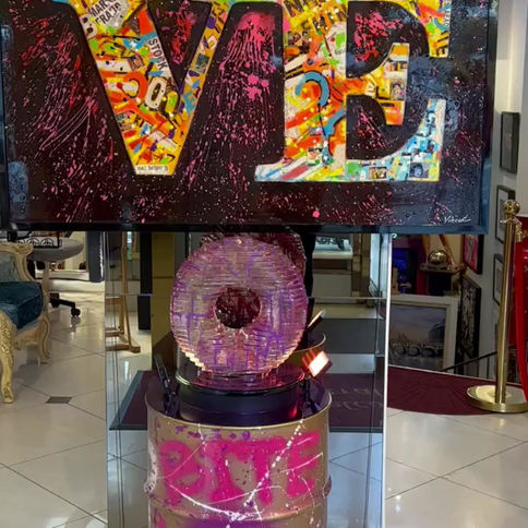 Pop Art mixed media Transparent Spinning Donut on Oil Drum